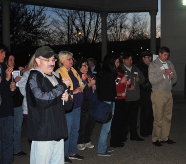 Some 80 labor and civil rights activists, together with a few elected officials, gathered at dusk at the Beaver County Courthouse April 4 for a candlelight vigil. The somber but militant event commemorated the anniversary of the assassination of Dr. Martin Luther King, Jr. and protested the current efforts of rightwing PA Republicans to block citizens from voting in 2012.